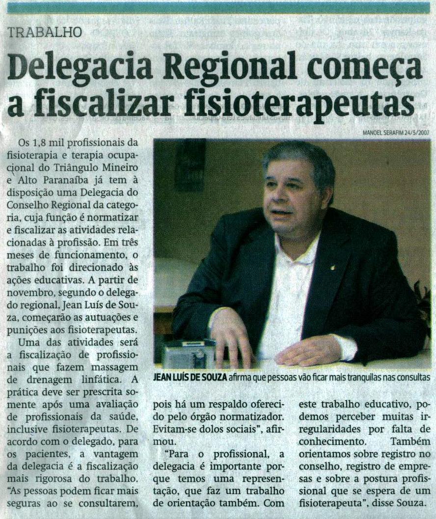 A edição de hoje, 29 de setembro de 2009 do Jornal Correio de Uberlândia, destacou a inauguração da Delegacia Regional de Fisioterapia e Terapia Ocupacional do Conselho Regional de do Estado de Minas Gerais.