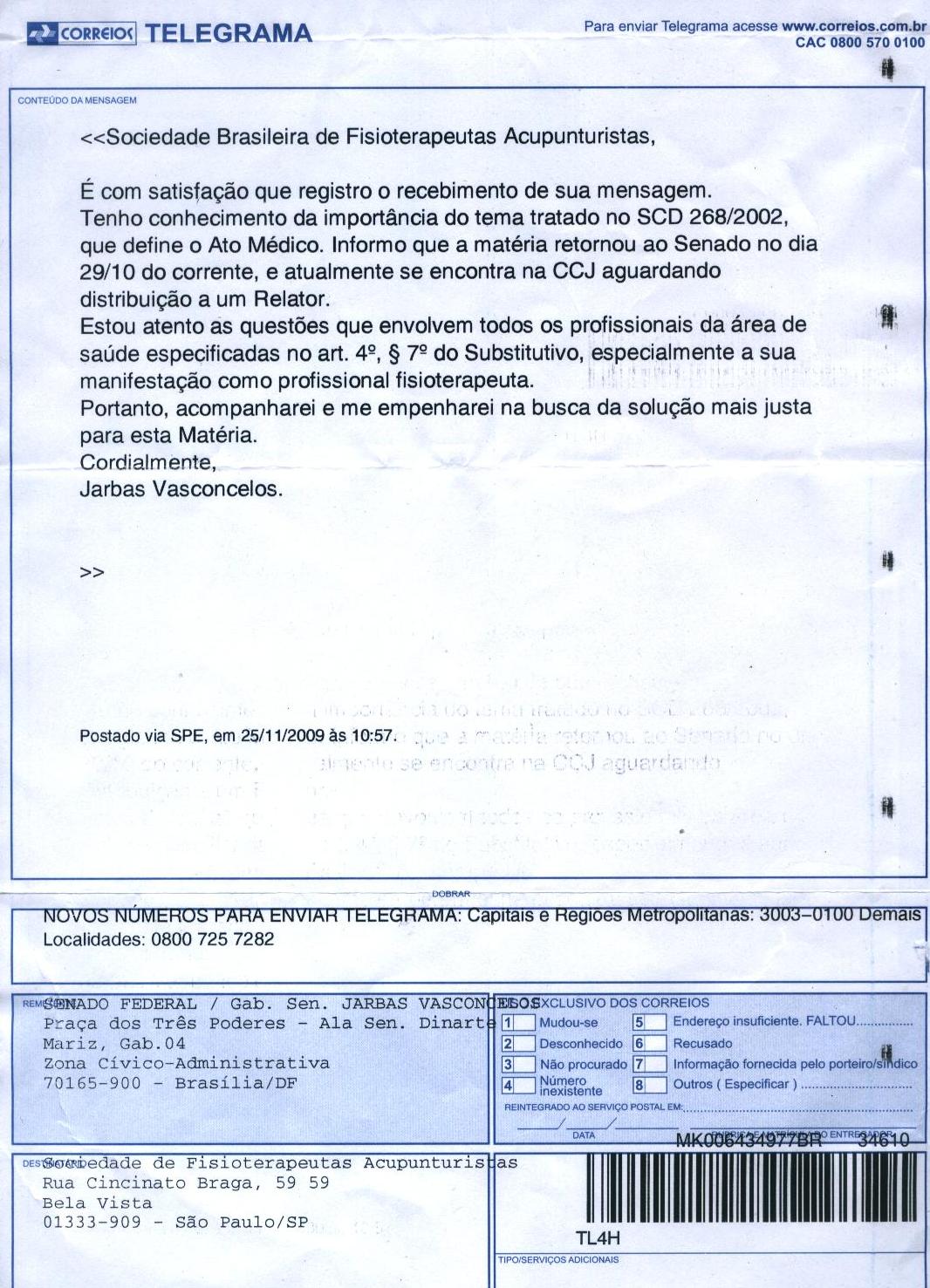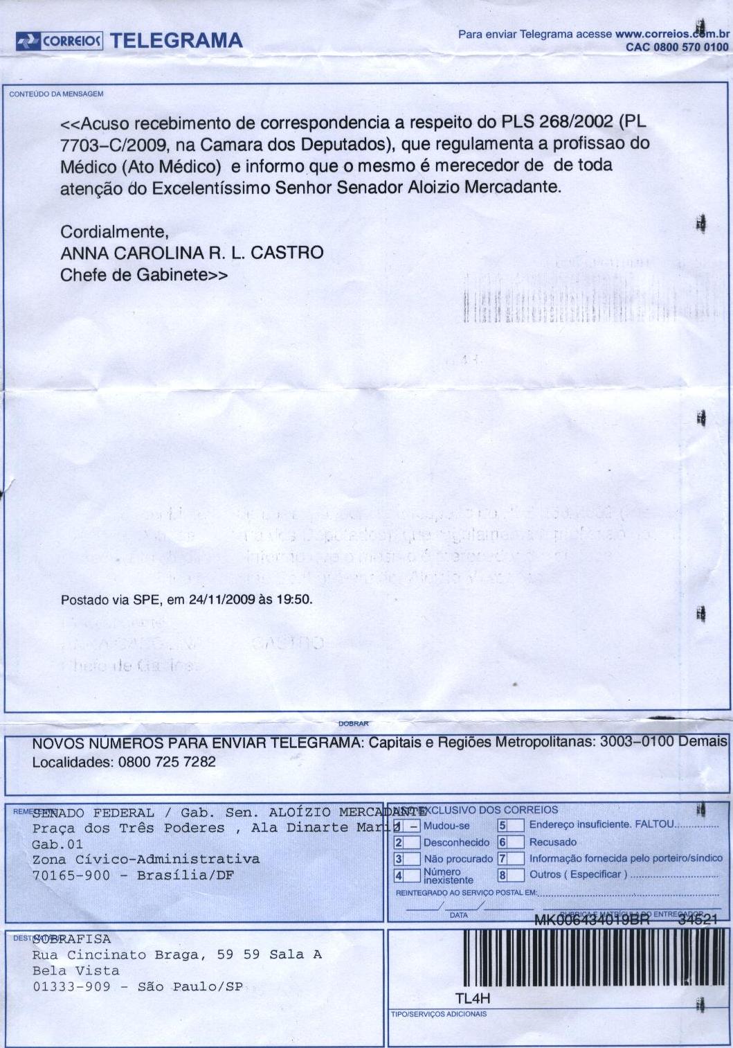 COFIRA ABAIXO AS COPIAS DE CORRESPONDENCIAS DE ALGUNS PARLAMENTARES.