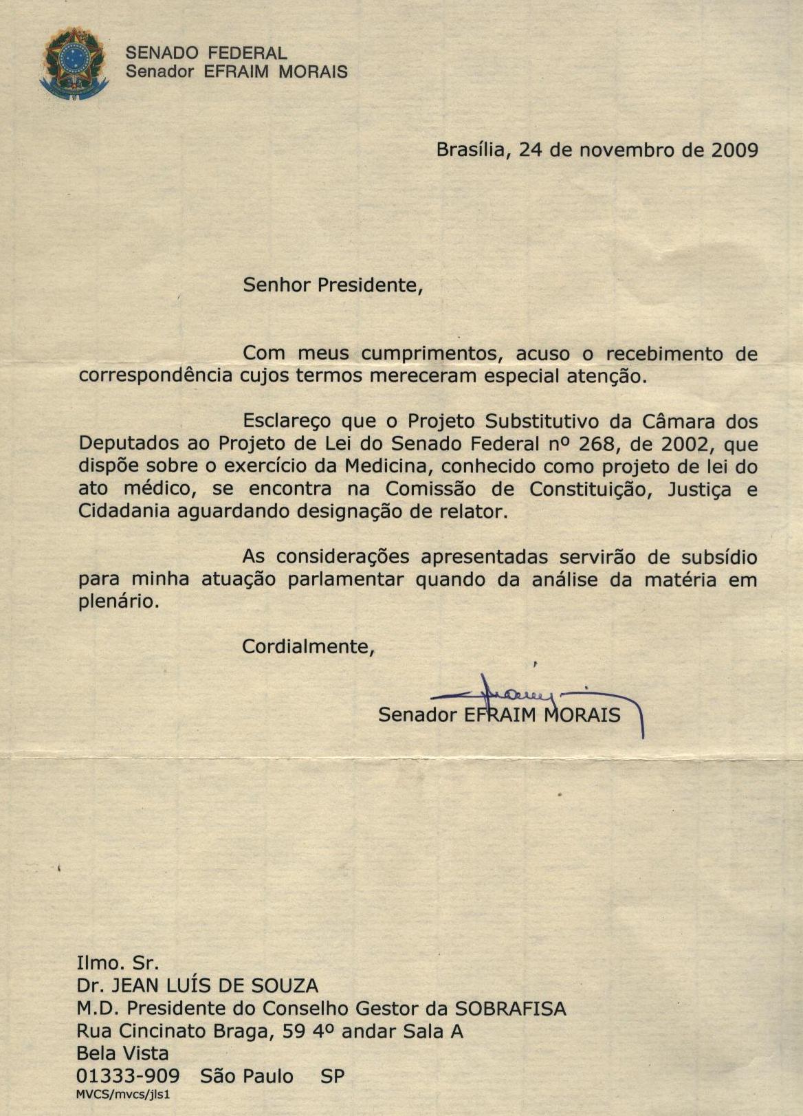 A SOBRAFISA, ALÉM DAS AUDIÊNCIAS QUE TEM MANTIDO COM DIVERSOS SENADORES, ENTRE ELES; EDAUARDO SUPLICY (PT-SP), LÚCIA VÂNIA (PSDB-GO), MARCONI PIRILO (PSDB-GO), IRÍS RESENDE (MG),EDUARDO AZEREDO (PSDB-MG), MAGNO MALTA(ES) ,ALVARO DIAS (PSDB-PR), SÉRGIO GUERRA (PSDB-PE),CRISTOVAN BUARQUE ( PDT-DF), PAULO PAIM (PT-RS),EPITÁCIO CAFETEIRA, TEM TAMBÉM ENVIADO CORRESPONDENCIAS E RECEBIDO APOIO DOS SENADORES, E OS MESMOS VEM SE MANIFESTANDO ATRAVÉS DE OFÍCIOS, CARTAS E TELELEGRAMAS, E-MAILS, OS QUAIS PASSAMOS A REPRODUZIR ABAIXO: ENTRE ELES: Aloizio Mercadante (PT-SP), Efraim Morais (DEM-PB), Jarbas Vasconcelos (PMDB-PE), NEUTO DE CONTO (PMDB-SC).CONTINUAREMOS COM NOSSOS CONTATOS, ATÉ QUE O CONGRESSO ENTRE EM RECESSO ESTAREMOS CONTINUANDO NOSSAS AÇÕES EM 2010, QUANDO TERMINAR O RECESSO DOS PARLAMENARES DE FINAL DE ANO.