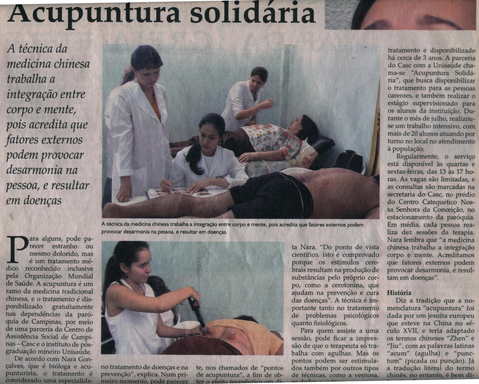 O Projeto Acupuntura Solidária, foi matéria de Jornal Informativo da Igreija Matriz de Campinas,em Goiânia.