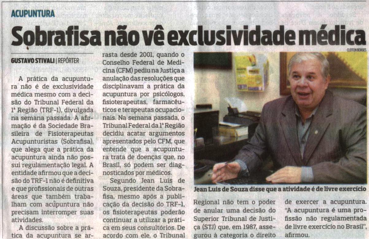 O Diretor do IPGU e Presidente da Seccional da Sobrafisa Minas Gerais, Diretor Secretário da Sobrafisa Nacional, Dr. Jean Luis de Souza, manifestou-se sobre a prática da acupuntura em decisão do Tribunal Federal da 1ª Região, "Mesmo após a publicação da decisão do TRF-1 os fisioterapeutas poderão continuar a utilizar a prática da acupuntura em seus consultórios.” De acordo com o Professor Jean Luis existe uma decisão do Superior Tribunal de Justiça, instância superior ao TRF-1 que desde 1987, assegura aos fisioterapeutas o direito de exercer a acupuntura. Quanto aos demais profissionais de saúde a profissão de acupunturista não é regulamentada no Brasil, sendo livre seu exercício de acordo com Artigo 5º inciso XIII da Constituição Federal. É de competência exclusiva do Congresso Nacional a regulamentação de qualquer profissão. Hoje tramitam no parlamento dois projetos, um no Senado de autoria do Senador Eduardo Suplicy ( PT –SP) e outro na Câmara Federal de autoria do Deputado Federal Vincentinho ( PT-SP), que ainda encontram-se em Comissões dessas duas casas, para posteriormente seguir a sanção Presidencial.